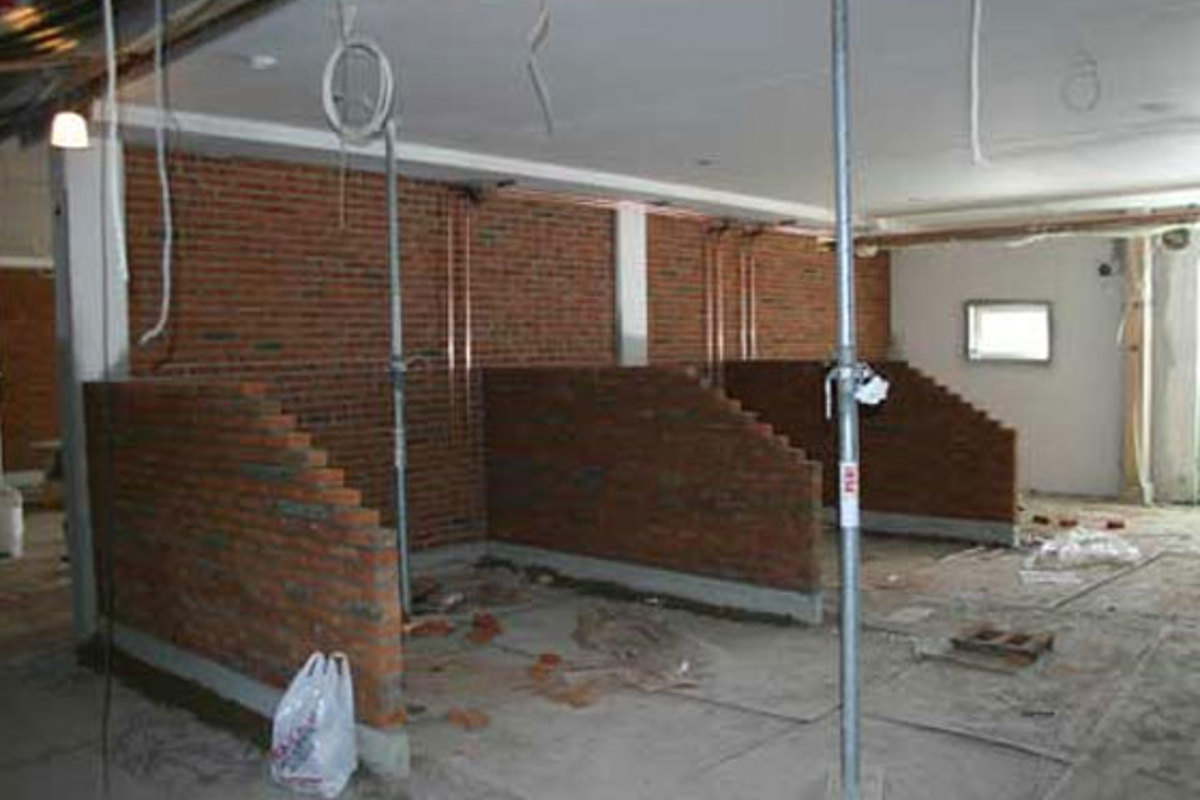 Murning av invändiga väggar i ett nybyggt ridhus med ett schatterat tegel från Tegelmäster.
